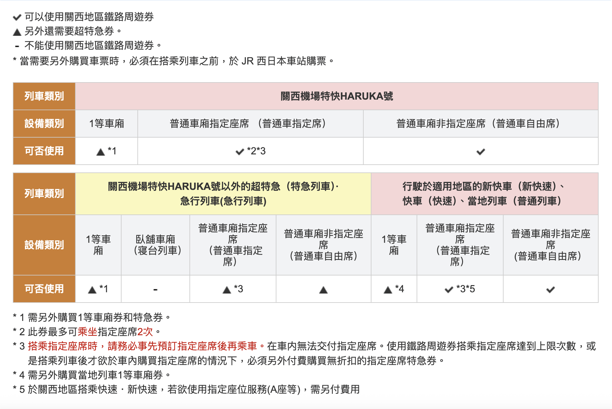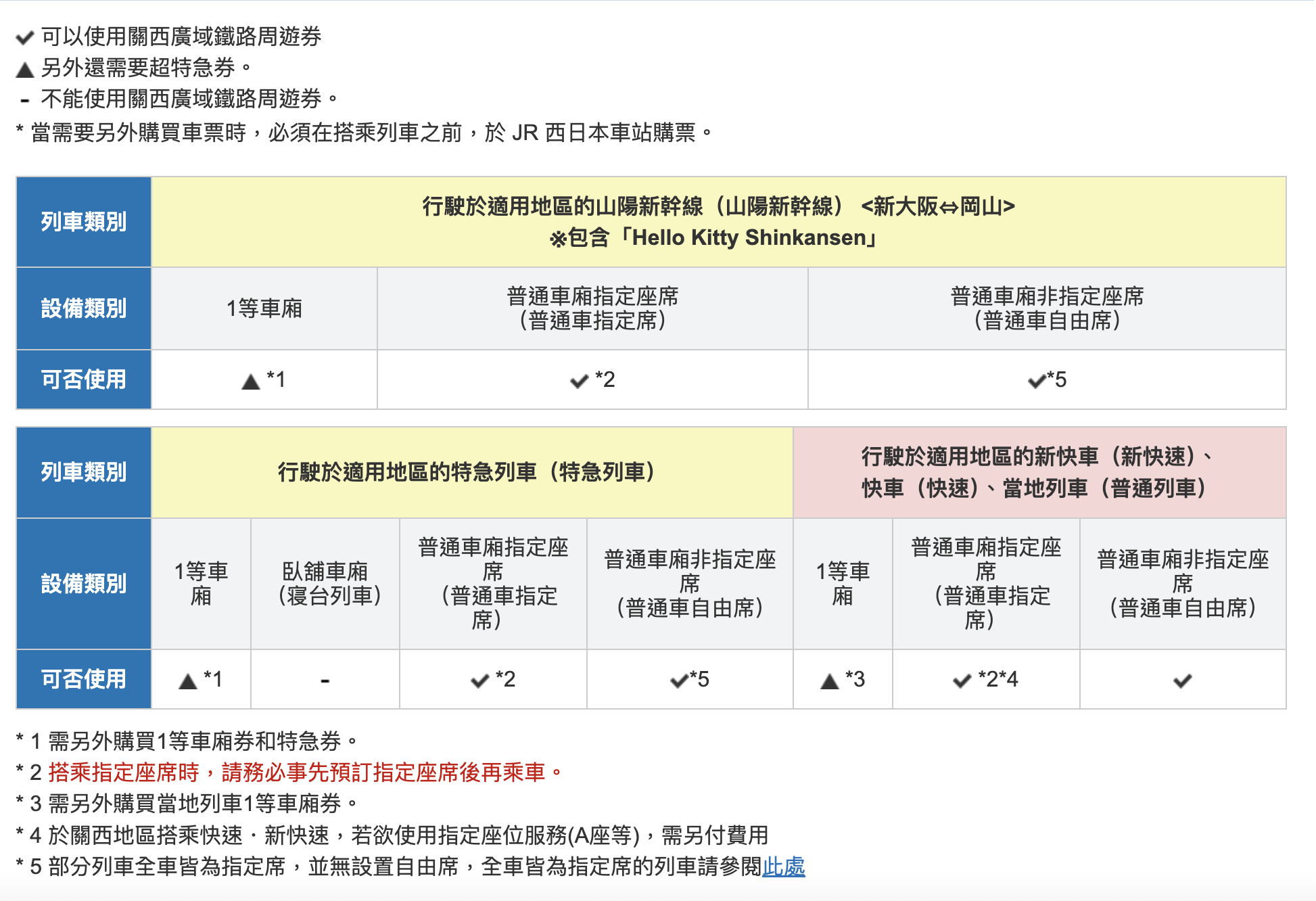 • 關西地區搭乘快速・新快速等指定座位(A座等)服務JR關西地區鐵路周遊券 】