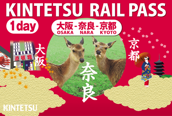 可自由暢乘大阪、京都、奈良的三本松站以西的近鐵線(空中纜車除外)的周遊券。
